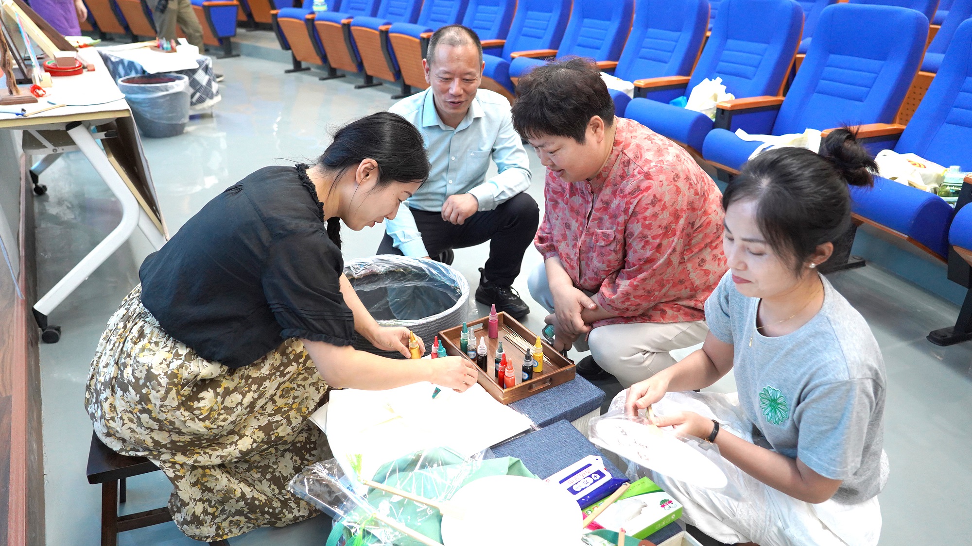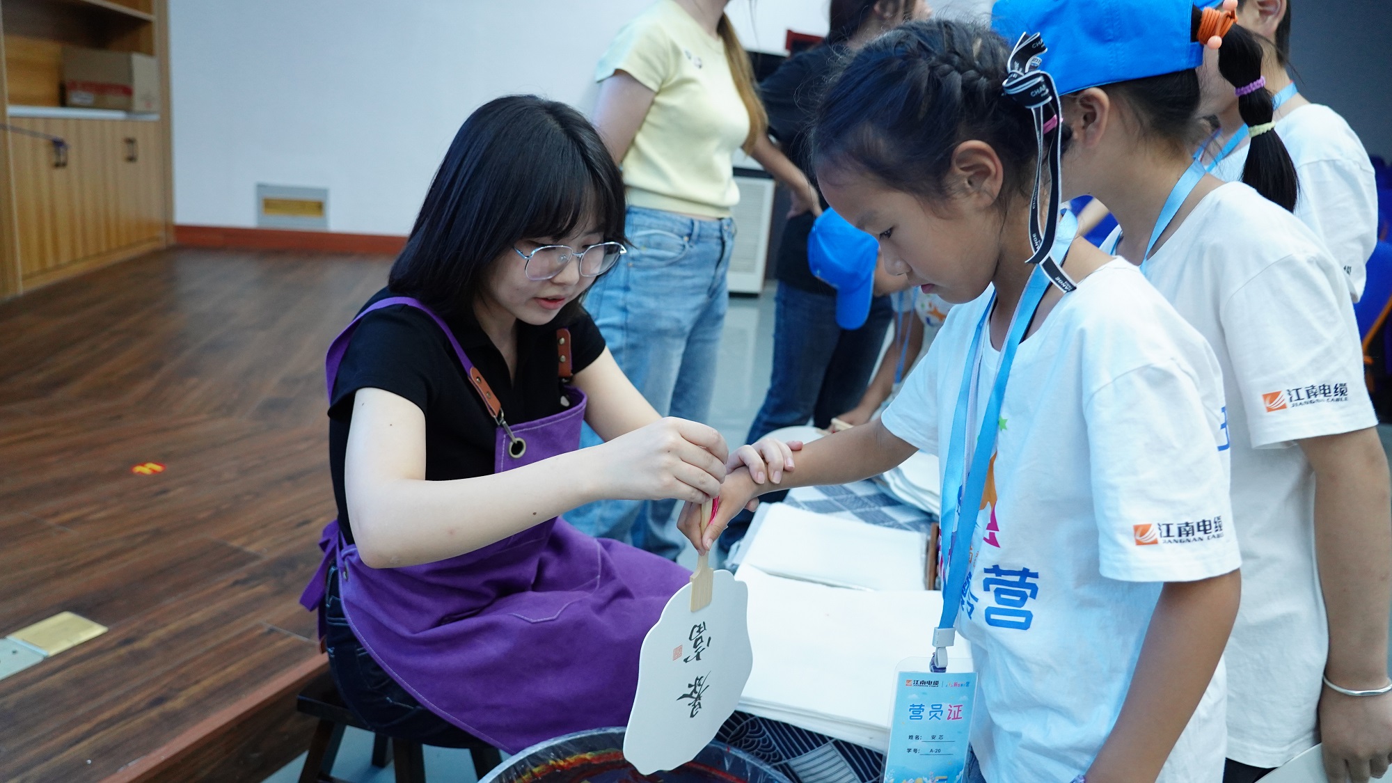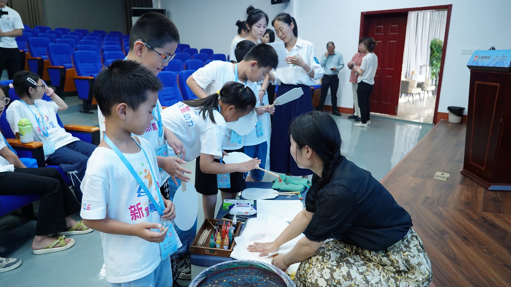 在老師的指導下,孩子們認真學習漆扇制作技巧,從顏色選擇到滴入漆料再到素扇入水附著花紋,一把把絢麗、雅致的漆扇躍然而出。大家在實踐中感受非遺技藝的精妙,更在潛移默化中培養(yǎng)了對傳統(tǒng)文化的熱愛。